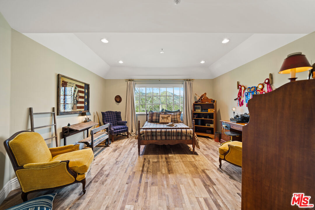 600 Carlisle is a magical country estate situated adjacent to the Lake Sherwood community, offering an unparalleled lifestyle set amongst rolling hills and majestic oak and sycamore trees without sacrificing convenience. A combination of comfort, style and understated luxury unite to create a sense of peace and serenity. The surrounding grounds are exquisite - set behind carefully crafted iron security gates. The driveway leads you past a picturesque pond with a bridge, horseshoe game area, grassy yard, and tree canopy. The property boasts two homes - a main single-story 5,115 sq ft estate with four bedrooms and high ceilings, open spaces and a unique flow to the waterfall pool and spa. On the other side of the driveway is a detached two bedroom fully self-contained guest house consisting of 870 sq feet. The acreage is an adventure featuring a tree house, playhouse, chickens, fruit orchard, table grape vines, basketball hoop, walkways, patios and vistas. Recently remodeled with a refined elegance that honors the traditional style integrated into the modern world.Interested in this Listing?