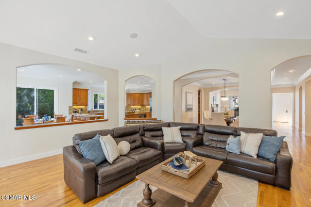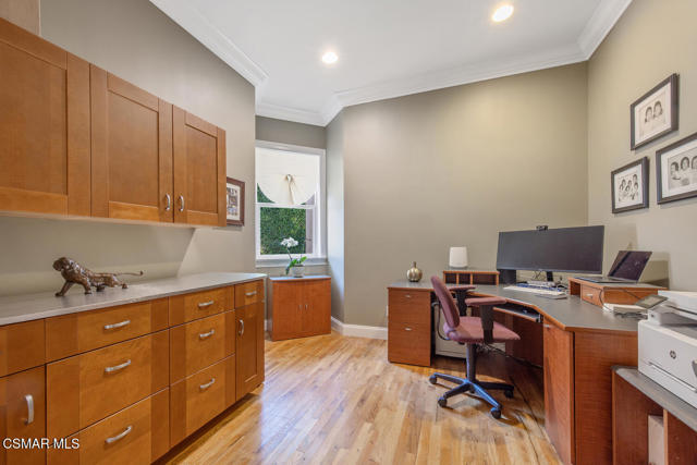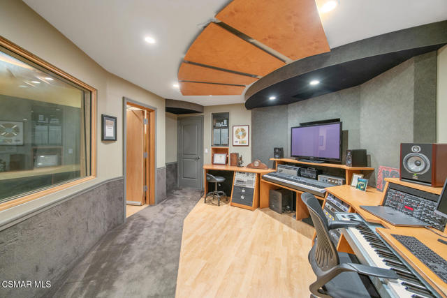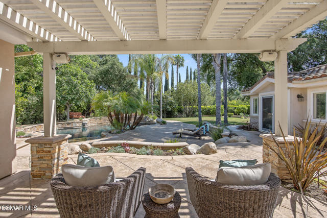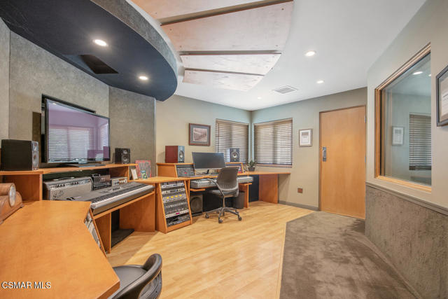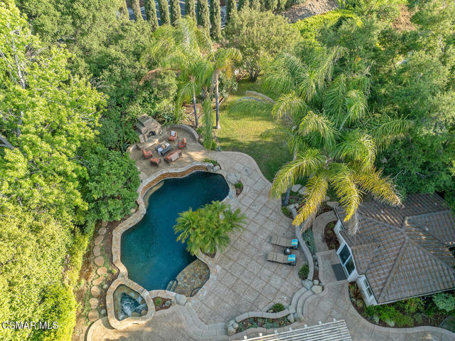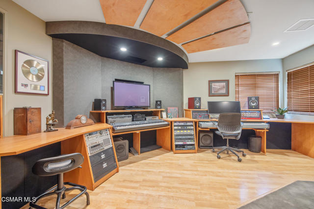 Experience luxury living in this stunning single-story estate in desirable Lynn Ranch,offering over 4,400 square feet of beautifully designed space on OVER HALF AN ACRE.The home features four spacious bedrooms all en-suite, plus a dedicated office, and an open-concept layout that seamlessly connects the main living areas--ideal for both everyday comfort and entertaining.A standout feature of the property is the professionally designed, detached RECORDING STUDIO,complete with its own washroom--perfect for musicians, podcasters, or creatives seeking aprivate workspace.Additional highlights include: A YOGA STUDIO for wellness and relaxation RV PARKING for added convenience An exquisitely designed outdoor living space featuring a large OUTDOOR FIREPLACE, resort-styleSWIMMING POOL w/solar, JACUZZI, and multiple entertainment and dining areas A vibrant citrus and vegetable garden that adds charm and sustainability. Inside, the gourmet kitchen is equipped for a high-end culinary experience, and the expansive primary suite offers walk-in closets and serene privacy. Whether you're hosting, creating, or simply relaxing, this home is a rare opportunity to enjoy elegance, functionality, and inspiration in one of Thousand Oaks' most sought-after neighborhoods.Interested in this Listing?