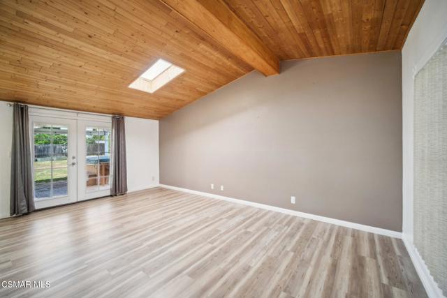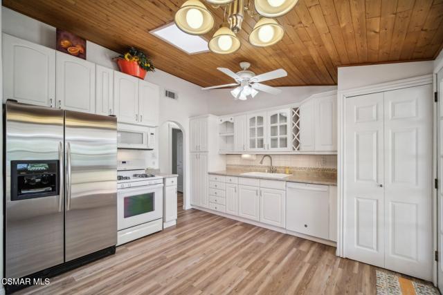 Nestled in a quaint neighborhood of Thousand Oaks, this adorable single story ranch style 3-bedroom home boasts a 10,018 sq' lot with 2 separate RV parking areas. Perfect to add an ADU! The professional hardscape entry welcomes you to your abode with 2 spacious paved RV private parking, each with a large side gate (the left side a RV/Trailer can be parked behind the gate)! Features include: an open floor plan with custom ceilings, skylights throughout bringing in lots of natural light, recent interior paint throughout, updated bathrooms, dual pane windows, French door leading to the backyard, waterproof vinyl wood flooring, custom ceilings and AC/Heating. The cooks' kitchen is open to the family room with plenty of cabinets and views of the backyard! The primary bedroom is enhanced with skylights and a remodeled bathroom. Relax in your spacious private backyard with fruit trees, including numerous orange trees, perfect to make homemade orange juice, a private above ground spa, 3 storage sheds and an open patio with an overhang to sit and enjoy the outdoors! Plenty of room to add an ADU, private pool/spa or whatever your imagination inspires! Did we mention 2 Amazing paved parking areas? Insulated and Drywalled 2-car garage with mini splint AC/Heat! Thousand Oaks offers Award Winning schools, shops, restaurants, parks, Thousand Oaks Mall, Thousand Oaks Cultural Center, trails, easy access to the 23 & 101 freeways and so much more! Rare Opportunity!Interested in this Listing?