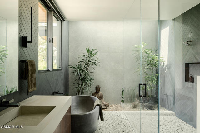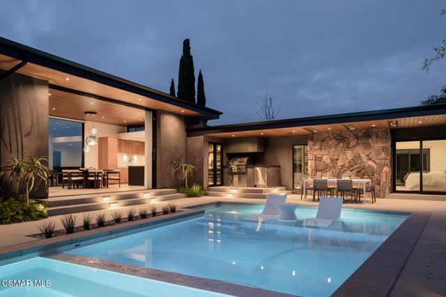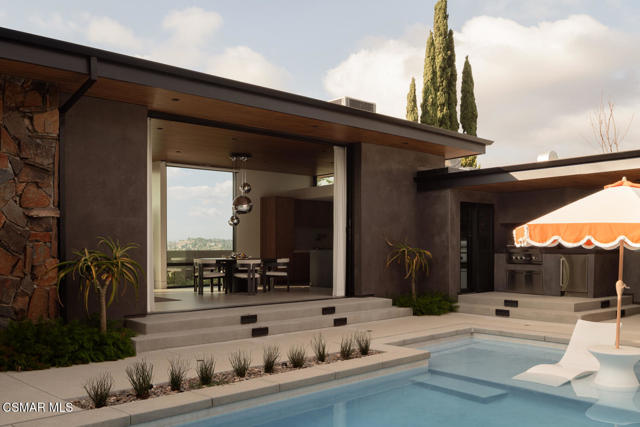 Discover this breathtaking custom Mid-Century Modern pool home, perfectly situated on a private flag lot with sweeping mountain views. Set on nearly half an acre, this opulent retreat is designed for entertaining, featuring a seamless indoor-outdoor flow. Expertly renovated while preserving its Mid-Century charm, this redesigned floor plan features two primary suites, along with a separate in-law suite downstairs with its own private entrance. A secluded room below the main bedroom offers versatile use as a man cave, office, or dena"complete with a bar, refrigerator, and total privacy! Each bedroom is an ensuite, and the open family room offers stunning year-round mountain views.The beautifully crafted exterior is perfect for family gatherings, social events, and ideal for entertaining. Just outside the family room, you'll find a courtyard pool, spa, and built-in BBQ area. An additional outdoor living space offers the perfect setting for large gatherings, holiday celebrations, and more. Thoughtfully designed to accommodate a variety of uses with exceptional attention to detail!Built as a forever home this totally reimagined mid-century modern house was taken down to the foundation in most areas leaving a few key elements of the original structure to maintain the spirit of the 1965 architectural modernist piece. Designed by Studio Rochelle and built by award winning JRP Construction, this fully renovated smart home has it all...Lutron home automation, Sonos sound system, Halo full home water filtration, 9 camera security system, Miele appliances, Toto smart toilet in primary, Keyless entry, Doorbird, Western window/door package, new HVAC, roof and much more! This is luxury living at its finest.Interested in this Listing?