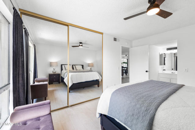 Meticulously kept, low maintenance corner unit in Oak Knoll Villas is filled with extra windows to show case the natural light and outdoor greenery. This 2 bedroom, 2 bath open floorplan offers a large covered patio space right off the living room and second bedroom to take in the breeze and unwind. Inviting living room offers an atmosphere to entertain and relax. Remolded white kitchen features stainless steel appliances, lots of storage and refrigerator. This unit has been recently painted throughout with recently installed desirable light wood-like flooring, upgraded baseboards, and finished with complimentary light fixtures. Primary bedroom boast ample closet space, attached updated full bathroom, and large windows to provide natural light. Hall bath has been upgraded with a sleek black and white design and offers large walk in shower, vanity and storage. Second bedroom offers large windows and access to exterior patio and offers the current owner a peaceful workout room and office space. This unit is located on the second floor and easily accessible by elevator. The laundry room is conveniently available within the building as well. The designated carport space is 265 and storage is conveniently located close to the unit. This active senior community offers a wide variety of amenities to include: onsite management, a pool, a spa, walking paths, clubhouse, billiards table, library, fitness center, outdoor BBQ's, a shuffle board court, and a community laundry facility, too! Enjoy community organized monthly social activities. Plenty of guest parking. The area surrounding the unit is lush with mature landscape. HOA dues cover common area maintenance, exterior earthquake insurance, trash, basic cable and WIFI. Primary owner must be at least 55 years old, secondary resident may be 45 or older. Community is located close to weekly farmers market, Botanical gardens, scenic hiking/biking trails, shopping, dining, theaters and parks! Come take a look! A great opportunity for resort living in a beautiful community!Interested in this Listing?