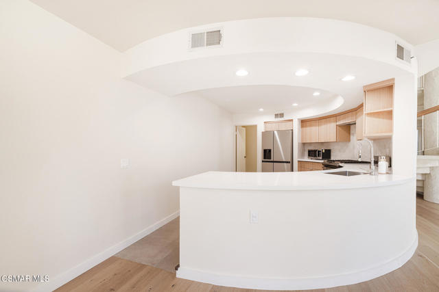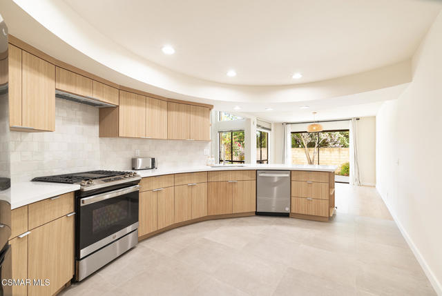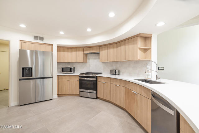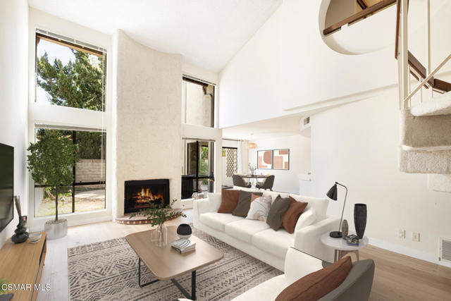 Welcome home to this gorgeous 2 story beauty in the coveted Racquet Club Villas in the heart of Thousand Oaks. With approximately 1,950 square feet of interior living space this 2-bedroom, 2.5 bathroom plus loft home is perfect for any buyer. Once you enter you will notice the vaulted ceilings which provide plenty of natural light to flow through the open floorplan. Downstairs you will be enchanted with the spacious living room with traditional fireplace. Dining room has a view of the cozy patio with plenty of room for outdoor entertainment. The breathtaking kitchen boasts a complete remodel with stainless steel appliances, quartz counters, tile backsplash and new cabinets which frame the circular layout. Upstairs is navigated through a unique spiral staircase and is setup as a dual master - one bedroom utilizes the hall bath with shower tub, while the primary bedroom has its own en suite bathroom with double sinks, two closets and shower tub. Upstairs loft can be used as an office, den or playroom. Other amenities include 2 car direct access garage, tesla charger, new wood flooring throughout, separate laundry room and central AC/Heat. Close to schools, parks, shopping and easy access to Los Robles Hospital and 101 Freeway. Come and see this home today!Interested in this Listing?