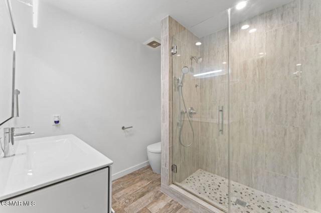 Experience luxurious living in this beautifully remodeled 4-bedroom, 2 1/2-bathroom home nestled within the sought-after Racquet Club Villas Community in Thousand Oaks. Perched atop a serene hill, this stunning property presents a captivating blend of modern upgrades and impeccable design. Every inch of this home has been meticulously upgraded, both inside and out. Step inside to discover a seamless flow of new hard surface flooring, windows, doors, and thoughtfully curated lighting fixtures. The heart of this home, the chef's kitchen, boasts elegant Caesarstone countertops and top-of-the-line stainless steel appliances that are sure to inspire culinary delights. Indulge in the spa-like ambiance of the 2 1/2 bathrooms, featuring Hans Grohe temperature controlled showers, Bidet toilets, and exquisite European sinks and fixtures. Luxuriate in style and comfort as you take in the scenic views and city lights from the newly expanded 500 sq. ft. deck, an ideal space for relaxation and entertainment. The multi-level floor plan offers a unique arrangement, with the second floor housing the welcoming entry, spacious living room with an expansive deck, the exquisite kitchen, a lavish master bedroom with an en-suite bath, an additional bedroom, and a convenient powder bath. Descend to the lower level to discover two more well-appointed bedrooms, accompanied by a versatile bonus space that can serve as an office or a secondary living room, along with another thoughtfully designed bathroom. Embrace the outdoors with ease, as the newly landscaped low-maintenance surroundings are both charming and efficient. A quarterly gardener service is included, allowing you to revel in the beauty of your surroundings without the hassle. Seize the opportunity to make this exceptional home yours and elevate your lifestyle with unparalleled comfort, elegance, and modern convenience. Schedule your viewing today and envision the endless possibilities that await you in this remarkable Thousand Oaks gem.Interested in this Listing?
