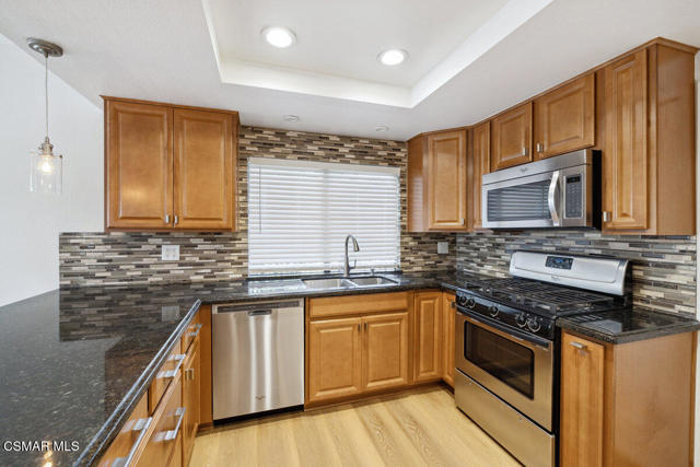 Come see this remodeled, move-in ready 2 story townhouse with the perfect end unit location in the beautifully maintained North Oaks complex, just one block from Cal Lutheran University. This 2 bedroom, 2.5 bath townhome has a remodeled kitchen which opens to the dining room and features: granite counters, stainless steel appliances, soft close cabinets, lazy susan, spice drawer, custom tiled backsplash, recessed lighting, large pantry and a six burner stove for the cooking enthusiast. Brand new laminate floors and fresh paint throughout. The downstairs powder room will keep guest out of your bathroom, and the upstairs bathrooms have been tastefully remodeled. The balcony off the primary bedroom is perfect for intimate sunsets. Too many upgrades to list! The one car garage has direct access to the unit. Close to shopping, restaurants, hiking trails and more. No projects here, ready to move in and enjoy.Interested in this Listing?