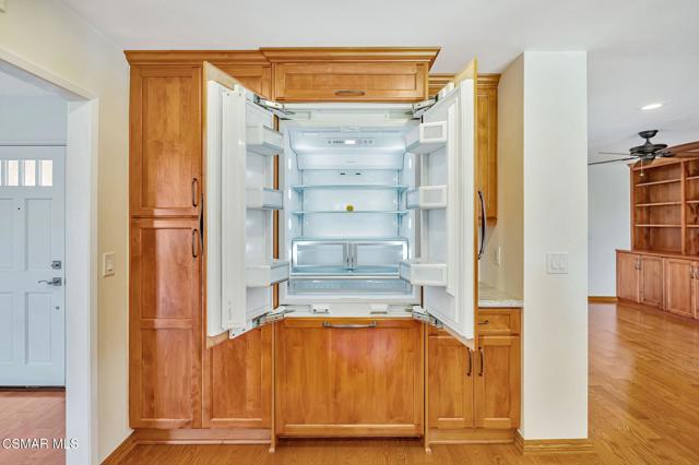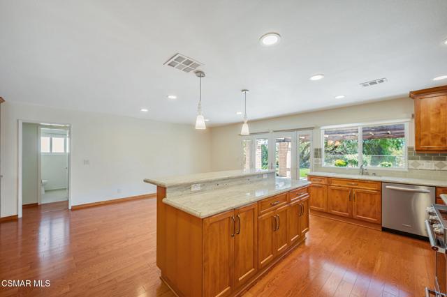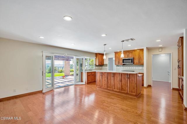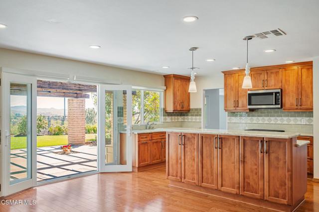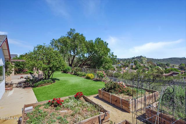 xt This beautifully remodeled single-story home in the highly desirable Sunset Hills neighborhood of Thousand Oaks offers 4 bedrooms and 2 bathrooms with stunning sunrise and sunset views. As you enter through the double door entry, a welcoming foyer leads you to an open floorplan and inviting living room with high ceilings and a cozy gas fireplace. The formal dining room, perfect for entertaining family and friends, overlooks the living room. With over 2100 square feet of living space on a large lot of over 16,000 square feet, this bright and open floor plan features designer dual-paned windows and doors, engineered wood floors that flow seamlessly throughout the home, and a customized hallway closet and cabinets for ample storage. The chef's dream kitchen boasts granite countertops, a large center island, a beautifully designed backsplash, and top-of-the-line stainless steel appliances with custom cabinets and pull-out drawers. The kitchen overlooks the family room, filled with natural light from all the windows. Additional features include newer baseboards, plantation shutters, recessed lighting, smooth ceilings, and plenty of storage throughout the home, plus additional attic space in the garage. The spacious primary suite has two walk-in closets and a stunning remodeled primary bathroom with a walk-in shower, a large soaking tub, and top-of-the-line cabinets and fixtures. There are four bedrooms, two on opposite sides of the home for maximum privacy, and both bathrooms have been remodeled with top-of-the-line materials. The inviting outdoor spaces include a beautiful, gated courtyard entrance with a large fountain, and a sitting area to relax and enjoy the serene and gorgeous views plus drought-resistant plants. Whether you're hosting guests or enjoying a quiet evening at home, the large, private entertainer's backyard provides the perfect setting with ample space for outdoor dining, lounging, and plenty of room for kids and pets to play. The backyard also features a variety of fruit trees, a vegetable garden, and artificial grass! Nestled in a wonderful location near Sunset Hills Golf Course, shopping, restaurants, parks and trails, and award-winning schools, this home offers great curb appeal and is move-in ready!Interested in this Listing?