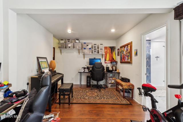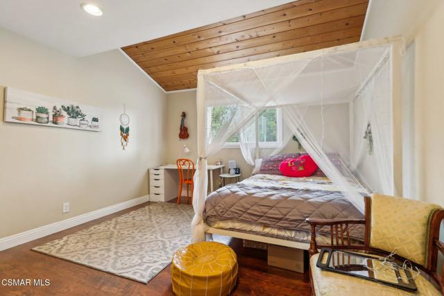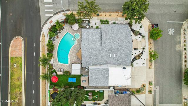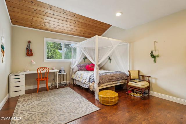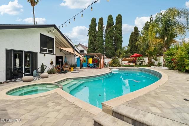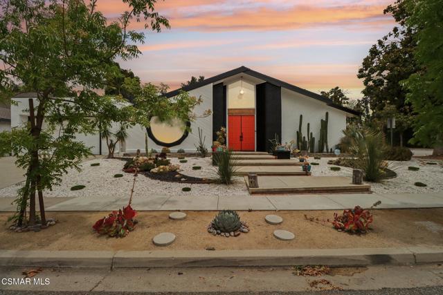 Welcome to 1261 Uppingham Drive -- a one-of-a-kind Thousand Oaks retreat where bold design, modern comfort, and a resort-style backyard come together in unforgettable fashion.From the moment you arrive, this striking mid-century modern home makes a statement with its geometric architecture, xeriscaped desert landscaping, and iconic circular window framing a pop of personality. Step through the vibrant double doors into a vaulted interior with tongue-and-groove wood ceilings, rich wood floors, and natural light pouring through dramatic front-facing windows.The open living and dining areas offer the perfect backdrop for cozy nights or lively entertaining. The updated kitchen features granite countertops, crisp white cabinetry, and a full backsplash.This home offers 4 spacious bedrooms, each with character and warmth, including a dreamy bedroom and a room full of color. A bonus room currently serves as a dual office/gym with Peloton views of the pool -- ideal for remote work or creative pursuits.Retreat outside to your private backyard resort featuring a sparkling pool and spa, cafe lights, lush landscaping, and a custom pergola with a vibrant dining area. Whether you're hosting summer BBQs or enjoying a peaceful morning coffee, this space was made for year-round California living.Additional highlights include updated bathrooms and multiple entertaining zones. Tucked away in the backyard, you'll find a cheerful, detached shed -- perfect for a workshop, studio, or hobby space.This isn't just a house -- it's a vibe. Come experience the magic of Uppingham Drive before it's gone!Interested in this Listing?
