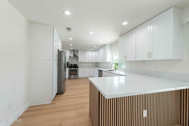 Welcome to 1421 Dorset Ave - a beautifully reimagined single-family home nestled in a quiet, desirable neighborhood of Thousand Oaks. This stunning 5-bedroom, 2-bathroom residence has just undergone a complete renovation, blending modern finishes with timeless comfort to create the perfect family oasis.Step inside to find a bright, open-concept living space featuring brand-new flooring, updated recessed lighting, and an elegant kitchen with custom cabinetry, quartz countertops, and stainless steel appliances. The two full bathrooms have been tastefully updated with designer tile work, sleek vanities, and all-new fixtures.Each of the five spacious bedrooms offers ample closet space and natural light, ideal for families, guests, or a home office setup. The primary suite has a great sized walk-in closet. Families will appreciate the proximity to some of Thousand Oaks' highest-rated public schools within the Conejo Valley Unified School District. The fully enclosed backyard provides a private sanctuary for outdoor entertaining, gardening, or relaxing in the California sun - and will be exclusively for the use of the main/front house. Don't miss your chance to live in a move-in-ready, tastefully renovated home in one of Thousand Oaks' most family-friendly communities!Please Note:The attached garage is currently under construction and is being converted into a separate ADU unit which will be rented independently.During construction, the driveway will be temporarily unavailable. Once the work is completed, the driveway will be designated exclusively for the main/front house.Interested in this Listing?