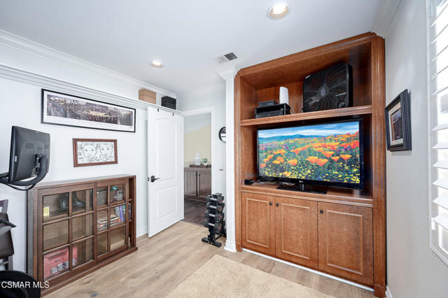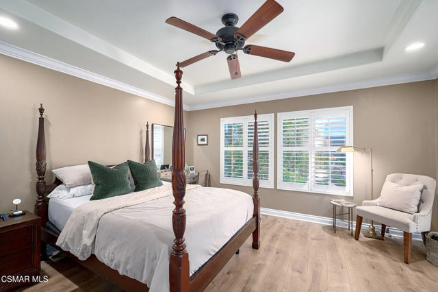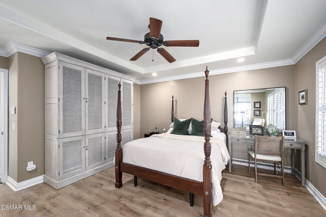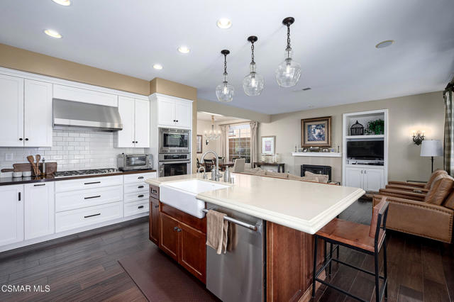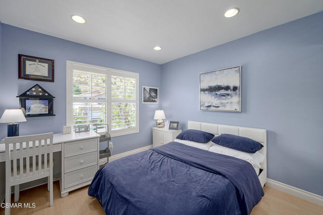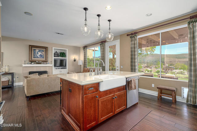🏡 Welcome to Eagleridge, Thousand Oaks!Experience the charm of this beautifully appointed 4-bedroom, 2.5-bath single-family home nestled in the heart of Thousand Oaks. This residence offers breathtaking mountain views from multiple vantage points.The home boasts modern amenities, including a remodeled kitchen featuring a spacious island ideal for seating and meal preparation, a farmhouse sink, quartz countertops, and stainless steel appliances. Crown molding accents several rooms, adding a touch of elegance. The family room is highlighted by a cozy fireplace, with hardwood flooring downstairs, tile in common areas, and luxury vinyl plank flooring in the bedrooms.Step outside to a generous private patio, perfect for entertaining, complete with a tranquil fountain and an overhang providing shade during the summer months.Located in a gated community offering a pool and playground, and situated near top-rated schools in the Conejo Valley Unified School District, this property combines comfort and convenience. Note: The closet in the fourth bedroom has been converted for TV use------Interested in this Listing?