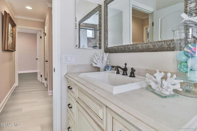 The lovely property is nestled in a quiet, highly sought-after, cul-de-sac community with hiking trails, a dog park, and easy access to the Gelson's shopping center, including a Coffee Bean, and other local favorites such as Cisco's Mexican restaurant and P & L Burger and near the Thousand Oaks DMV. Nearby schools: K-8 Bridge Charter School, Los Cerritos Middle School, and Westlake High School (please check with the school to ensure enrollment). Pride of home ownership; Single-story. As you enter through the front door, you'll notice the spacious living room (high ceiling, with a skylight) for a tranquil ambiance. This home is beautifully remodeled... recessed lighting and added dimmers. This floor plan also comes with a family room that opens up to an upgraded professional kitchen, with lots of bells and whistles you will surely appreciate! From the beautifully upgraded ''white Venetian stain cabinets'', to the upgraded ''granite countertop'' with classic beveled edges, to the full backsplash, to the three-year-old 48' Sub-Zero stainless-steel refrigerator and the new stainless-steel Jenn-Air professional hood. Did you notice the food warmer and shelf? How about the amazing Jenn-Air professional 6-burner gas stove top with griddle...double oven, and a separate wine/ drink refrigerator. Ample cabinets to help keep you organized; with a custom wine rack just to help keep a few of your favorite wines on hand and ready for pouring. The main bedroom is spacious and inviting, with an upgraded slider door to the backyard, double mirrored closets, and recessed lighting with dimmers. It offers a private upgraded bathroom where the classic ''white Venetian cabinets'' theme is carried out, and even the oversized mirror is custom-designed (you have to pay attention to the details). The entire look is timeless. All windows and slider doors have been upgraded for better year-round energy efficiency. Did I mention another added bonus of an extra hallway linen closet... yes, the HVAC has been relocated to the attic, which means an added extra linen closet in the hallway. The guest bathroom has also been upgraded, and it's fully tiled and remodeled, adorned with a warm bronze faucet and classic custom design ''white Venetian'' vanity! In the other 3 bedrooms, you'll notice the same integrity and condition of the property are continued throughout. Here are a few virtual staged photos to help give you a different room usage perspective, it's been designed with you in mind. The front, side, and backyard are all low maintenance, designed to help keep water costs down with drought-tolerant landscaping...all the while achieving high enjoyment usage, from side to backyard. Upgraded rolled-up insulated garage door. The garage is fully finished- drywalled, freshly painted, with built-in storage units, and the floor is newly epoxied. Upgraded approximately five years old A/C unit, ''Maytag'' washer, front load dryer, rain gutters, and downspouts. Three years old ''APEC RO drinking water system'' . All the ductwork was cleaned about a year ago and the homeowner maintained the recommended roof maintenance to keep the roof in good condition. In addition, the landlord has installing new top-of-the-line ''CORETEC Luxury Vinyl Plank ''flooring throughout just almost a year ago. And have the entire interior house freshly painted (last year) just before the new tenants' move-in date.Interested in this Listing?