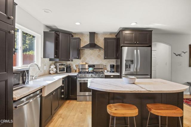 A rare find that blends refined craftsmanship with the laid-back charm of coastal living. This beautifully upgraded home is tucked away in one of Ventura's most sought-after Midtown neighborhood. Offering both privacy and convenience, just minutes from the beach, shopping, and dining.From the moment you step inside, you'll notice the attention to detail -- rich hardwood floors, cozy fireplace, custom cabinetry, designer fixtures, and an abundance of natural light throughout. The thoughtfully designed layout features spacious living areas, a gourmet kitchen with elegant finishes and honed marble counters, that create a warm yet sophisticated atmosphere.The bedrooms are generously sized, with a luxurious primary suite offering a tranquil retreat-- complete with a spa-like bathroom and private patio. Perfect for unwinding in the ocean breeze.Fully customized, high-quality fencing and gates that open for easy access to the detached two car garage. Whether you're drawn to Ventura for its coastal vibe, community charm, or artsy energy, this is a home that truly stands apart. This property offers prime potential for additional units, such as an ADU, guest house, or even a multi-unit setup. Cameras with audio on premises.Interested in this Listing?
