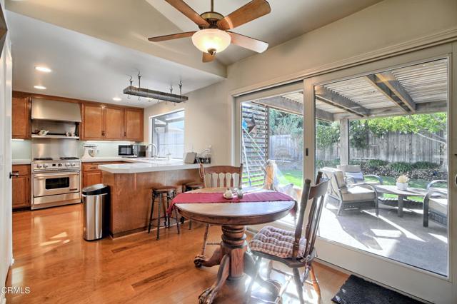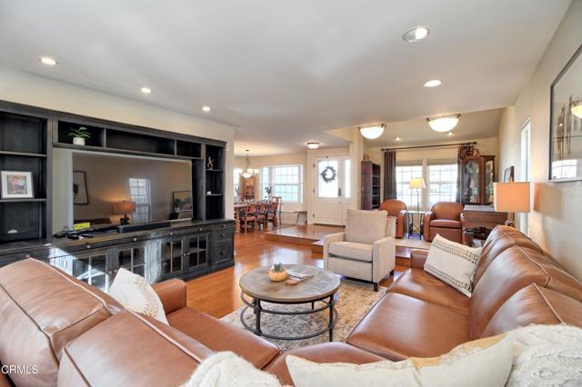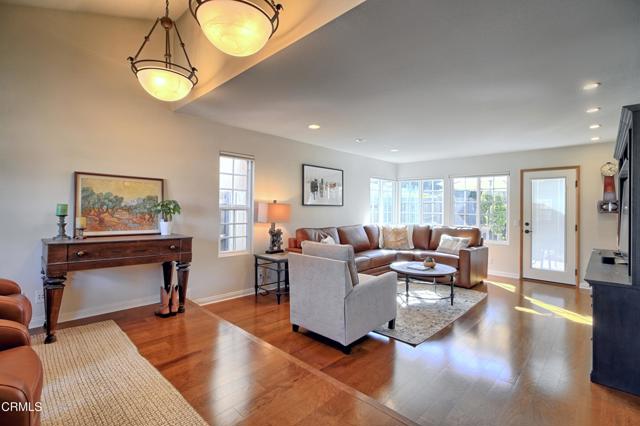 Drive up to an exceptionally beautiful home in one of Ventura's premier neighborhoods. Wonderful exterior appointments invite you to view the inside with countless upgrades to this lovely property. Enjoy the purposely thoughtful land and hard scaping. A custom pavered driveway is accented with entry and side path walkways along with accent wall with hardwired inviting lighting. The front yard is framed within beautifully tailored stucco walls and crowned with tasteful designed concrete caps. Within the front yard are a variety of mature unique trees and scrubs that lend themselves to seasonal variations and supported by an automated commercial irrigation system. Within this foreground to this spectacular home is stunning architecture of a bay window, dormers, pavered entry path and stone steps. This home boasts custom exterior painting, a newer roof, tasteful wood garage door and upgraded dual pane windows. Through the front door, enter into an inviting open floor plan with inviting living room, step-up reading nook and comfortable dining area. The living room has vaulted ceilings, custom recessed and hanging lighting fixtures along with new electrical switches with dimmers and sockets. The dining room is integrated into this area affording the owner ease of flow and inviting openness. Engineered hardwood floors frame the downstairs rooms highlighted by newer baseboards and quarter round molding. A second living room off the kitchen and breakfast nook gives the buyer flexibility to enjoy the spaciousness of this home. The second living room again has vaulted ceilings, recessed and custom lighting along with a fireplace, upgraded windows and top-of-the-line glass slider to the backyard. The kitchen has newer countertops, upgraded appliances including a sub-zero refrigerator, recessed and under cabinet lighting. Advance to the upstairs with the oak bannister and white spindle stairway that has inlaid carpet. The landing is brightly lit with a custom light and 3 dual pane windows. The minor bathroom has been upgraded with a new vanity and countertop. The minor bedrooms both have deep window seats inside the exterior dormers. The primary bedroom has cathedral ceilings, recessed lighting and upgraded dual pane windows that create that await your serene sanctuary. The low maintenance backyard is fully fenced, and contains tailored landscaping consisting of mature trees, shrubs and flowers. Automated irrigation, patio cover and hard scape in a private settingInterested in this Listing?
