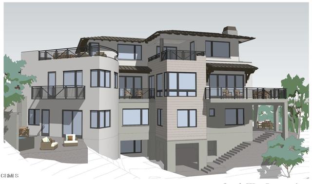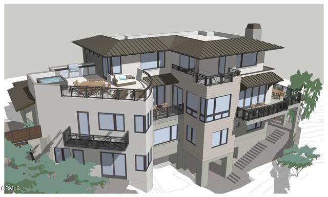 Prestigious Ventura Hobson Heights location. This home is located on a top street of exclusive multi-million-dollar homes. Spectacular Ocean and Island Views with 50 miles of sweeping coastline views from Pt Mugu and Camarillo, and Anacapa and Santa Cruz Islands, and downtown Ventura and the pier. A contemporary masterpiece designed by renowned Architect Bruce Labins. The builder is pre-selling this 3-story, 5138 SF home with approximately five bedrooms + 5 baths, including an attached ADU. The Main House consists of 4644 SF - 4 bedrooms, five bathrooms, one half bath, 3 kitchens, a laundry station in the Primary Suite and a full laundry room on the lower level / with a craft area and kitchen. All bedrooms have substantial natural light. It also features a 4-story elevator that lets owners and guests move from the lowest level to enjoy a bountiful sunny garden and patio areas to the upper-level Primary Suite. The west-facing roof deck enjoys a spa, firepit, and outdoor kitchen. The Junior ADU consists of 494 SF fully permitted as an independent secondary dwelling unit with a private entrance and a large private patio with intimate ocean and island views. It has a separate full-size kitchen, perfect for extended family and guests, and can be accessed from the main house. There is a lot of useable premium space that few hillside homes have. The garage is approximately 500 SF with easy access from the circular driveway and lots of off-street parking. The other features with approximate square footage include a Gross Lot area of 9044 SF. Covered outdoor living area with elevator access at basement level 1100 SF. Decks, patios, and terraces - terrace lower level 150 SF, balconies Primary Level 400 SF, Entry Bridge 95 SF, Covered Balcony at Main Level Entry 95 SF, Master Suite private covered outdoor patio 95 SF, Master Suite sunrise patio ~ 120 SF, Upper-level roof deck with elevator access, outdoor kitchen, spa and firepit. There is no one better to speak to than the premiere location on Hillcrest - with a rare design that is ideal for extended families and elderly that can navigate the entire house and site via an elevator and with the circular driveway, it's a super easy drop-off and pick up - and home delivery - there is also additional parking that will be improved once the house next door is done - that easement is on 1918 Hillcrest - and no longer an entrance to their garage - so technically it is 100% useable by 1918. Additional floor plans.
