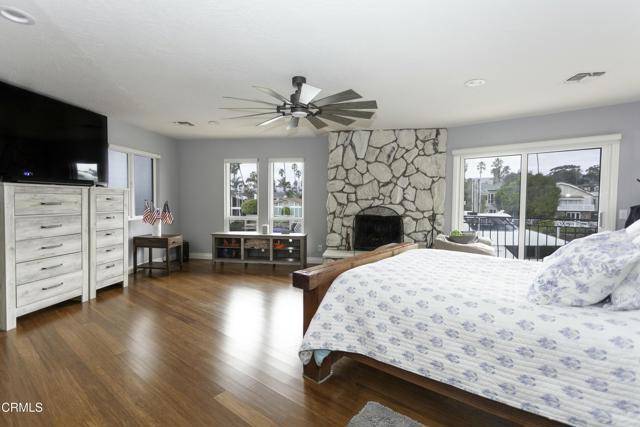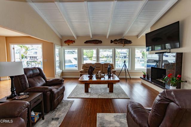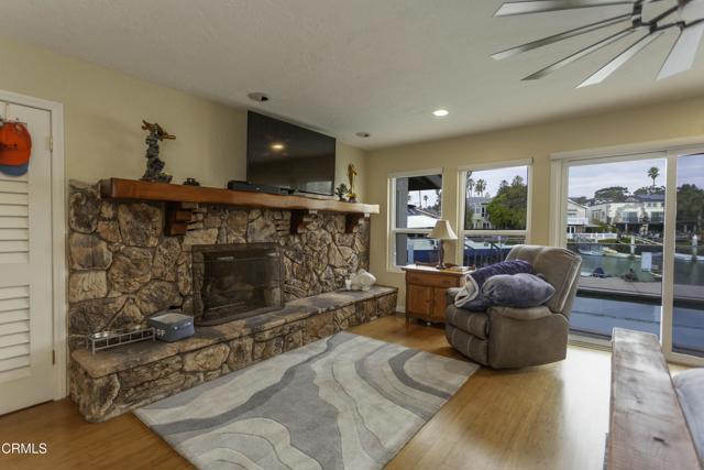 Ventura Keys Waterfront Home with newer 90 ft boat dock. Newer electric 50 amp power at your dock. 80 (+) ft deck with a swimming pool and hot tub incorporated in the pool. Electric powered cover for the pool. Home was built in 1979 and was nicely remodeled. A beautiful view of the water from most rooms. 1 Bedroom downstairs with fireplace and view of the water, remodeled full bath with walk in shower. French doors from dining room leading to the deck area. Fireplace in large dining room and open to the kitchen with granite countertops and top of the line appliances, with large counter for eating or entertaining. Living room with fireplace and view of the water.Outside area great for BBQ or just sitting enjoying the sunsets. 3 bedrooms and 2 full baths upstairs with jacuzzi tub in the primary, sauna, and a walk in shower with a balcony and view of the water. There are 4 fireplaces , and a 4 CAR GARAGE. Not too many of those in the Ventura Keys. The home and boat dock has a sheltered location with a large turning basin close by. This is the place to be to enjoy Ventura Beach living at its best!!Interested in this Listing?