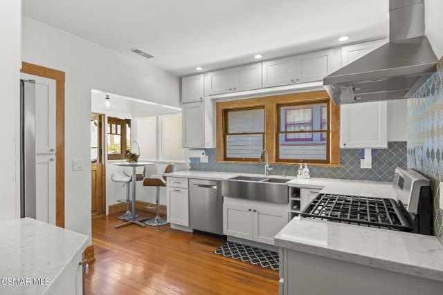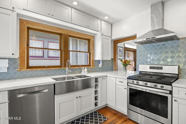 Don't miss this darling home in a prime location! This absolutely CHARMING craftsman home circa 1918 offers one of the most coveted locations in Ventura. You can head downtown to fine dining, live music, shopping, local farmers market and MORE. Less than a mile from the beach! Nostalgic touches throughout include bay windows, built in cabinetry, original hardwood floors and a Dutch door that opens to a back porch dining area with peek-a-boo views. There are two bedrooms and a remodeled 3/4 bath with dual vanity. The recently improved kitchen is complete with quartz countertops, white cabinetry, stainless steel appliances, recessed lighting and an abundance of natural light. Enjoy sunset entertaining with cool afternoon breezes on the beautifully landscaped and private outdoor living area. Permitted roof and gutters completed in June 2024. Additional upgraded improvements include electrical panel and rewire, central heating and AC, tankless water heater, indoor laundry hook ups and completely fenced and low maintenance landscape.Interested in this Listing?