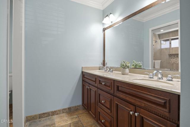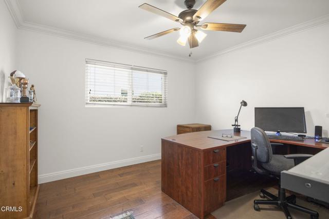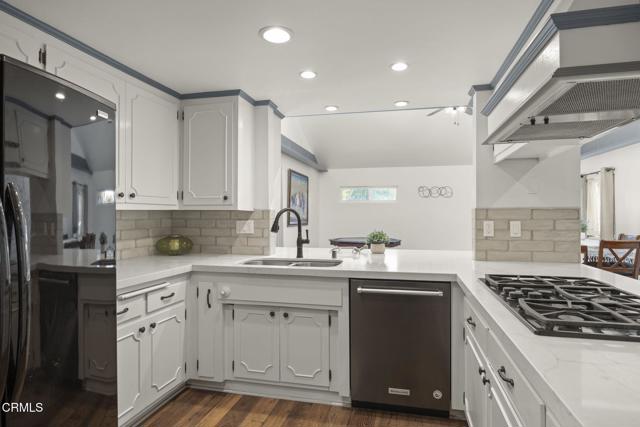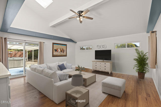 This spectacular 5 bedroom, 3 bath, home, nestled above Ventura College, at the end of gorgeous Gettysburg Street in a very child friendly cul-de-sac. In addition to enjoying the perks of no backyard neighbors, this wonderful home is situated on an elevated lot, which provides extra noise reduction from Loma Vista (only 2 lanes here, not 4). Spend time in the private jacuzzi while taking in the natural beauty of this gorgeous Ventura gem in a highly sought-after neighborhood. This 2,839 square foot home features a kitchen with new quartz countertops, professional grade appliances, and an abundance of storage. Skylights adorn the extra vaulted ceilings in the living room, and the dining room's dual sided fireplace and built-in bar are sure to make for great entertaining in this bright and airy home. The homes' four bedrooms- including one ensuite with an amazing spa like shower- are all conveniently located on the ground floor, with an added bonus bedroom on the second level. Seller has a JADU conversion design by adding closet and bathroom in attic, next to fifth bedroom. Side door with enclosed stairwell completes separate entrance. Ask about the 2-bedroom 1 bath ADU design as well! The exterior of this lovely home was recently repainted, new vinyl windows were recently installed, and plumbing fixtures have been updated! Come imagine the possibilities in this peaceful and charming home!Interested in this Listing?