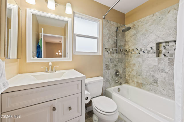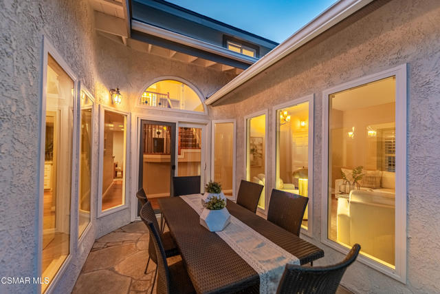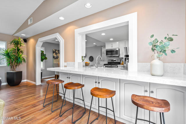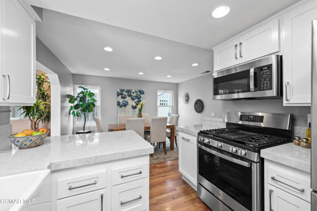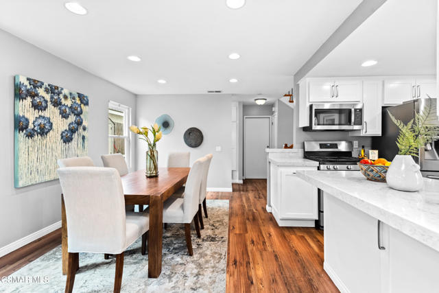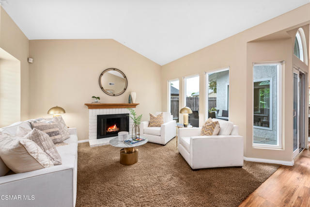 Welcome to your dream retreat in the heart of Ventura's desirable Woodside Cottages neighborhood--where warmth, comfort, and connection come together. Tucked away on a peaceful cul-de-sac, this beautifully refreshed, move-in ready home invites you to slow down and savor every moment. Step inside to discover vaulted ceilings, abundant natural light, and a layout that balances cozy nooks with thoughtfully expanded living space--including a spacious, permitted bonus family room and a backyard designed for true California indoor-outdoor living. Whether you're hosting a weekend BBQ, enjoying dinner al fresco, or simply unwinding after a long day, this home gives you room to relax, recharge, and entertain with ease. Start your day in the formal living room, where tall windows frame the morning light and a cozy wood-burning fireplace offers the perfect backdrop for quiet coffee moments or gathering with friends. Just beyond, the heart of the home unfolds into an entertainer's dream: a fully remodeled kitchen equipped with a GE WiFi-enabled stainless-steel six burner gas range with air fryer, GE dishwasher, and a Samsung double-door refrigerator. Wraparound Pentax Quartz countertops provide generous space for meal prep and casual seating, ideal for everything from dinner parties to homework sessions. The kitchen flows seamlessly into the spacious permitted bonus family room addition, complete with recessed lighting, skylights, a gas fireplace, and a built-in surround sound audio system--perfect for game days, movie nights, or laid-back lounging. From here, step through sliding glass doors into a backyard oasis featuring lush new sod, well-kept landscaping, an herb garden, and multiple hardscaped seating areas--including a private open-air atrium. With a built-in gas line ready for your grill or fire pit, it's a space designed for gathering year-round. Upstairs, the wrap-around staircase leads you to a serene primary suite that truly feels like a retreat. French doors open to a private balcony--perfect for slow mornings or sunset wind-downs. Vaulted ceilings and abundant natural light create a calming, elevated atmosphere, and the fully upgraded en-suite bath (2021) features a custom walk-in shower, modern tile work, dual sinks, and vanity lighting. Two additional bedrooms offer plenty of space for family, guests, or a home office, and utilize a full bath with a tub/shower combination. Modern upgrades blend seamlessly into daily life: enjoy the convenience of a smart home with app-controlled devices including a Google Nest thermostat, WiFi-enabled gas range, garage door opener, and smoke detectors. A hardwired security system and USB-equipped wall outlets add tech-savvy ease. The iSpring 3-stage whole-house water filtration system provides clean, filtered water throughout. Even the garage is thoughtfully finished--with epoxy floors, custom shelving, tool workshop, plus a driveway that accommodates three cars. A large backyard shed adds even more storage for hobbies, gardening, or outdoor gear. This home has been meticulously maintained with key updates including a new roof and gutters (2019), kitchen and primary bath remodel (2021), new water heater (2021), Milgard windows (2019), and exterior paint (2023). Perfectly located near Citrus Glen Elementary, Chumash Park, the prestigious Saticoy Club, Ventura Community Park: Aquatic Center & Sports Complex, and quick 126-highway access, this home offers a rare blend of neighborhood character, functional upgrades, and flexible living spaces--all ready for your next chapter.Interested in this Listing?