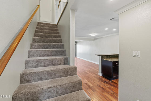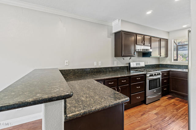 Move-In Ready Ventura Townhome! Welcome to Cambria Village, one of East Ventura's most sought-after gated communities! This rare 2 bedroom, 2.5 bathroom features dual primary suites, each with its own private bathroom. Perfect for multi-generational living, roommates, or guest privacy.A bright and open floor plan highlighted by rich wood flooring, recessed lighting, crown molding, and fresh paint throughout. The well-equipped kitchen features stainless steel appliances, granite countertops, and breakfast bar. The living and dining areas flow seamlessly together and lead out to a private patio with serene mountain views; An ideal space to enjoy your morning coffee or unwind after a long day.Upstairs, both bedrooms offer privacy, ample closet space, and full bathrooms. Additional standout features include an upstairs laundry area and pull-down attic ladder for extra storage space. HOA amenities include gated community and parking with elevator access, water, sewer, trash, pool, spa, and more!!!Designed for comfort and convenience, this updated townhome offers modern finishes, low-maintenance living, and scenic surroundings; conveniently located near parks, shopping, and freeway access. Whether you're a first-time buyer, downsizing, or seeking a comfortable investment property, this one checks all the boxes.Don't miss the opportunity to make this move-in ready home your own!Interested in this Listing?