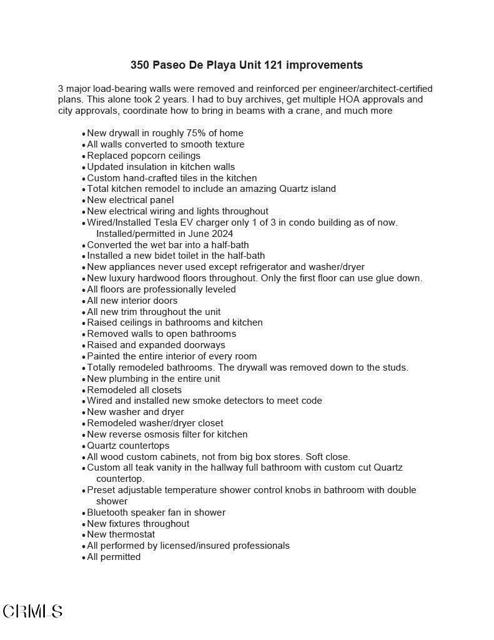 RARE OFFERING! This is the ONLY 3-bedroom, 3-bath unit at The Buena Vista! This immaculate condo has an Open-Concept living space with high-end finishes, from gleaming floors to custom cabinetry. The gourmet kitchen has state-of-the-art appliances, and the Great Room welcomes friends and family. In 2024, this home underwent a down-to-the-studs permitted remodel, including raising a ceiling in the main living space! A list of upgrades is in the documents section of this listing. The living and dining areas are bathed in natural light thanks to floor-to-ceiling windows. A slider leads to your deck, where you can enjoy the sunrise and watch the sun set. The Primary Suite has a spa-like bathroom with a soaking tub and a generous walk-in closet. Sliders lead to a deck with exquisite, rare Orchids. Bedroom #2 has closet built-ins. The spacious 2nd bathroom has an oversized walk-in dual-headed shower with Bluetooth audio. Bathroom #3 has a commode with a heated seat and bidet; Park side-by-side in a secure gated garage with your own private Tesla charging station. This is an end unit on the northeast corner of the building. Property amenities include a year-round heated pool, spa, a newly remodeled fitness center, and two saunas. Shopping and dining in Ventura's historic district are within walking distance. Experience living where every day feels like a vacation! Also available for sale.Interested in this Listing?
