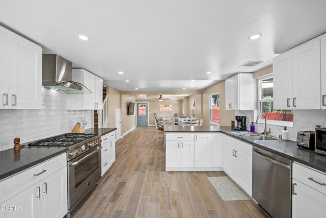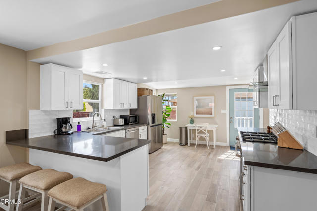 This FULLY FURNISHED (unfurnished optional), stylish, 3 Bedroom and 2 Bathroom home is ALL NEW and ready for move in today! The home has been fully remodeled with modern touches throughout and prepared with everything you need to feel right at home. The modern upgrades feature beautiful wood tile flooring, top-of-the- line stainless steel appliances, quartz countertops, subway tile backsplash, recessed lighting, vinyl custom dual pane windows and more! The living room opens nicely to the kitchen offering dining at the table or breakfast bar. The first floor offers two bedrooms, a full bathroom and an appointed laundry area with washer and dryer. Upstairs enjoy a 3rd bedroom and bathroom retreat. The entire home has been outfitted with delightful decor offering comfort and style in every room, equipped with everything you'll need to enjoy your stay including housewares, kitchen essentials, shower and bath supplies, linens, towels and more!The property is gated for privacy with a spacious front patio, turf grass area and a long and gated driveway with space to fit 2 -3 vehicles. Additional features include ceiling fans in each room, TVs, WiFi, and air conditioning. This impressive fully furnished and newly remodeled monthly rental is just waiting to welcome you home! Other Notable Features:Near Ventura beaches and bike baths - walking or biking distance.Great location for commutes to Santa Barbara and Ojai.Just 1 block from Patagonia's corporate headquarters.All utilities included in monthly rent! (Electricity, Gas, Water, Trash)TV & internet service also included!A small pet would be considered.No smoking please.Available immediately for 30+ day rental!