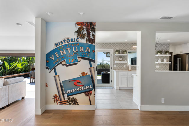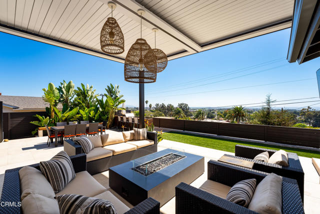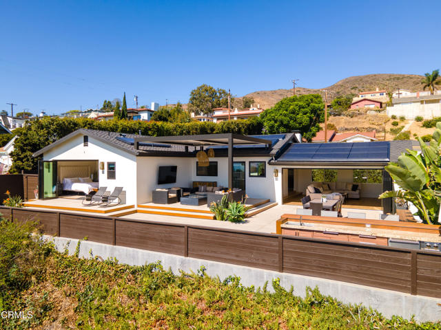This beautiful home is located in the highly desirable hills of Ventura! The property is conveniently located in a cul-de-sac, and offers stunning views from the backyard.Enter into the property to be greeted by the a stunning, open concept foyer and and dining room complete with a beautiful mural of Ventura and a fireplace. The modern and sleek dining table offers comfortable seating for up to six. Walk down to steps from the dining room to the living area, that has panoramic doors! The glass doors can be completely opened, to the enjoy the ocean breeze Ventura is famous for. The grey, and extremely comfortable, sectional in the living room is the perfect spot to watch the sunset, or the flat screen TV with a sound bar.The all white, beautifully updated kitchen has everything you could need! Equipped with all stainless steel appliances, plenty of counter space, and a coffer maker and expresso machine.Head down the hall, to see the three bedrooms and two full bathrooms. The master bedroom has the same panoramic doors in the living room, and a large en-suite bathroom. Enjoy the view of Ventura from the king bed! The master bedroom also includes a large closet, a double vanity sink and walk in shower in the bathroom.The second bathroom has a queen sized bed, and the third bedroom can act as both an office, or bedroom with a full-sized pull down murphy bed.The panoramic doors lead to the perfectly designed outdoor area. The backyard includes patio furniture with a fireplace and plenty of seating, outdoor bar area, and a large patio table. This backyard is perfect for enjoying views, lounging in the sun, or watching the breathtaking sunsets.This property is currently available for bookings 30 days or longer.Solar panel powered home, and internet is Starlink.Property has A/C.Owner may consider a small pet with additional $500 pet deposit.Additional cleaning, booking and utility fee.W/D Located in the property.Detached two car garage.Driveway parking for two.