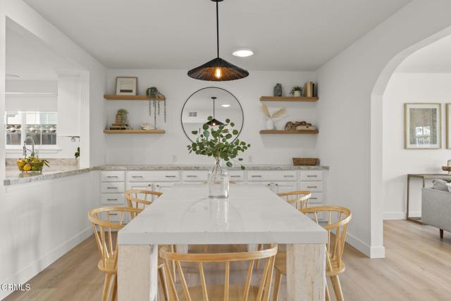 Newly renovated, spacious single story home in prime central Ventura neighborhood! **Price reflects unfurnished and minimum 12-month lease. Property can remain furnished & utilities included (Ideal for displaced families, or those needing temporary housing) for additional fee. Inquire for shorter term stays and flexible extensions!**Located on quiet, and private tree-lined street, this light and bright 4 bedroom, 2 full bath home offers brand new wide plank flooring, and a fantastic open concept floor plan with both a large living & family room that share a dual-sided fireplace. The newly renovated kitchen opens to the formal dining room, and is complete with abundant cabinetry for storage, granite countertops, and new stainless steel appliances. All four bedrooms (including a dedicated work space in one bedroom), are conveniently located down the hall offering new carpet, new paint as well as a large updated guest bath. The primary bedroom features a beautifully renovated ensuite bathroom featuring a brand new dual sink vanity, new walk-in shower, and all new fixtures. Ideal for indoor/outdoor entertaining, slider doors lead out to the backyard offering multiple fruit trees, Weber barbecue, hot tub, storage shed, and large patio for lounging or outside dining. Laundry is conveniently located in the attached 2-car garage, also offering abundant storage. Situated conveniently in a super safe family & pet friendly neighborhood, and just minutes to groceries, great restaurants, parks, hiking trails, multiple schools, hospitals, freeway access, and just a short drive to downtown Ventura's best beaches! This home is a must-see and turn-key for its new guests!